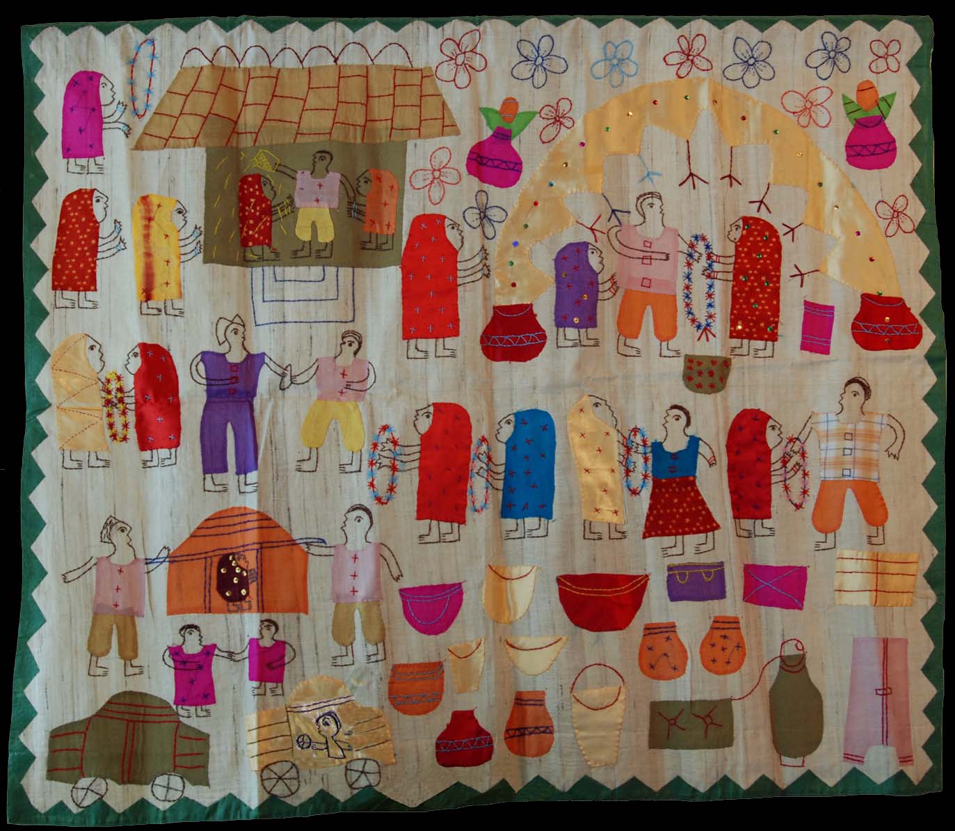 Artist: Unknown Medium: Silk and cotton fabric scraps on silk fabric background Form: Khatwa art Region: Bihar