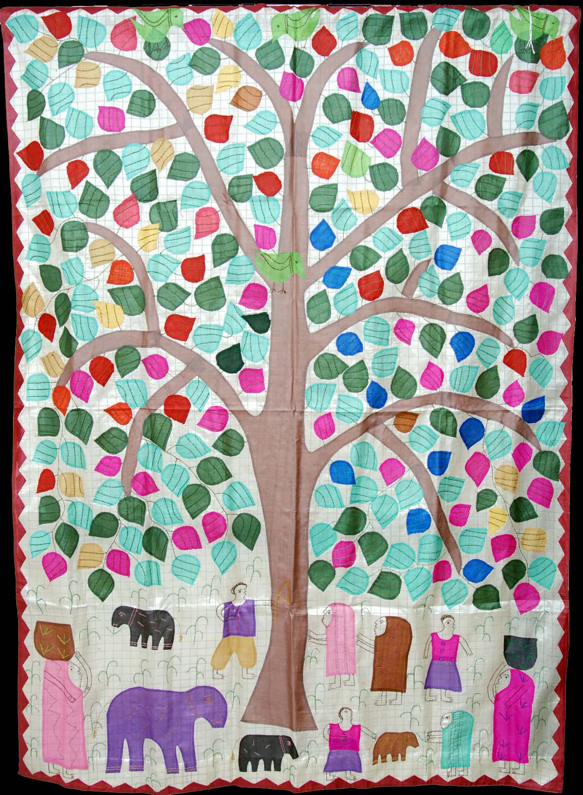 Medium: Silk and cotton fabric scraps on silk fabric background