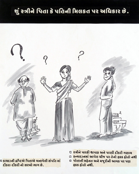 (on the left): According to law, the son and daughter have an equal share in their father’s property.